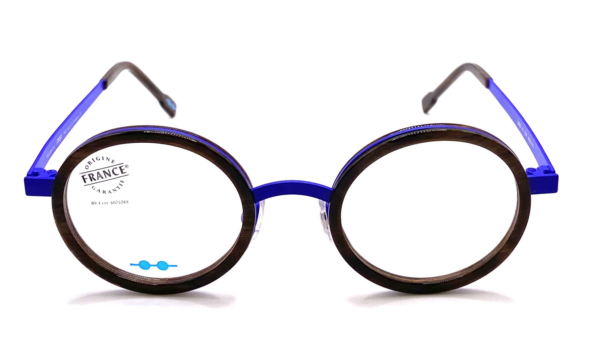 couleur : alternance de beige foncé/marron foncé, et métal bleu électrique mat